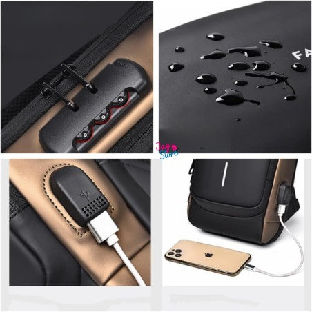 El canguro Antirrobo cuenta con cierre antirrobo: el compartimento principal de la mochila antirrobo cuenta con un diseño de cremallera con cierre que facilita guardar tus objetos de valor. Este canguro tiene un bolsillo de seguridad oculto en la parte posterior para proteger tus pertenencias del robo. Tiene un Puerto de carga USB: (alimentación móvil no incluida) para cargar tus dispositivos electrónicos conectando tu propia alimentación móvil.⚙️ Especificaciones: Material: tela Oxford - Puerto de carga USB