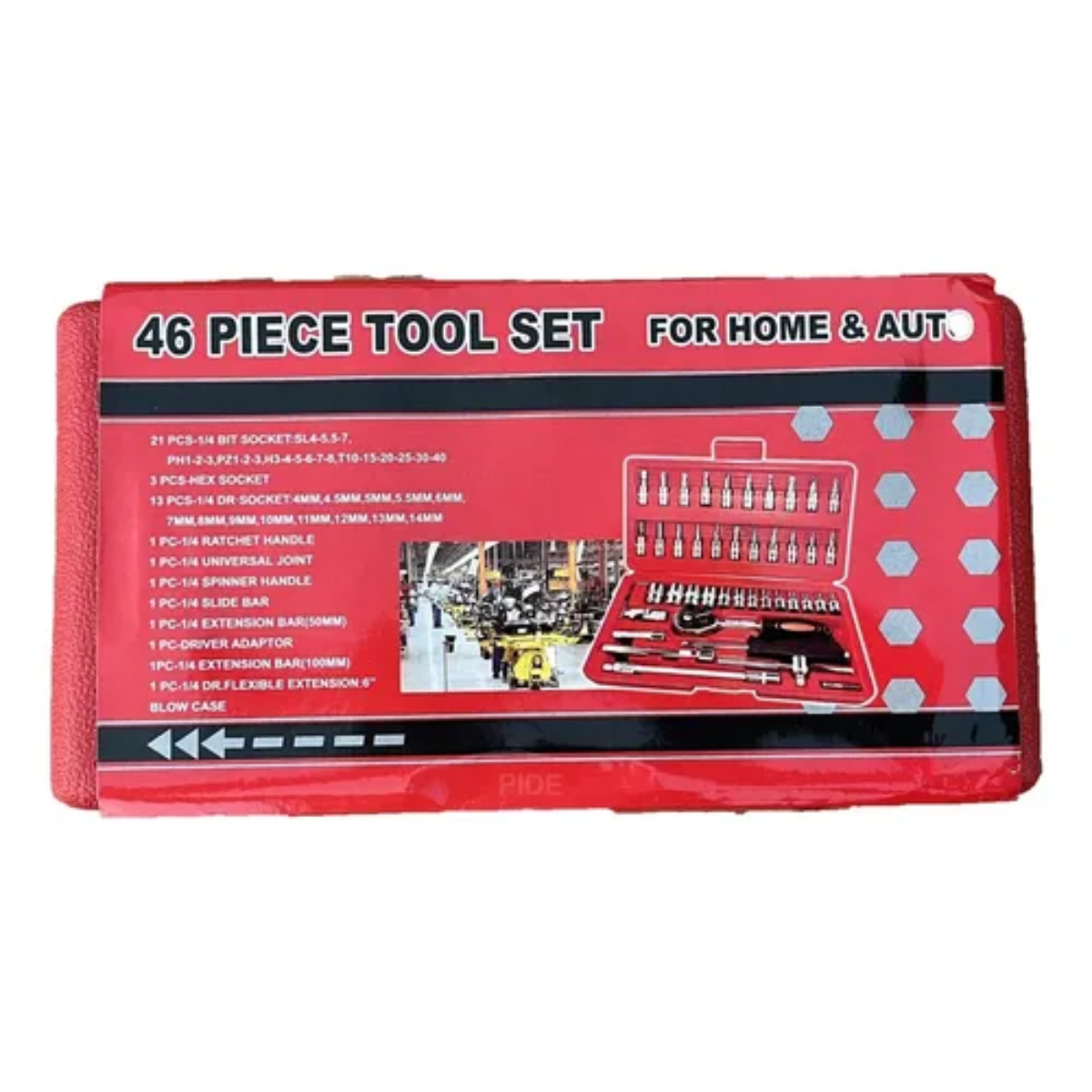 JUEGO DE COPAS SET DE HERRAMIENTAS X 46 PCS MECANICA AUTOMOTRIZBeneficios:1. El acero de aleación de cromo-vanadio de alta calidad es forjado de precisión y procesado por calor, con alta dureza y alto par. La superficie es espejo pulido, hermoso y elegante, a prueba de óxido y duradero.2. Equipado con mangas multi-especificación, que se pueden utilizar con las barras de conexión en los componentes, con funciones completas.3. Con llave rápida de trinquete, con botón de gota rápida y palas de inversión positivas y negativas, puede funcionar continuamente.4. El embalaje de la caja de plástico a juego puede almacenar mejor y guardar las herramientas.5. Montaje de manga multifuncional, adecuado para reparación de automóviles y trabajos de reparación mecánica. Garantía: Cuenta con 10 días de garantía por defectos de fábrica únicamente, daños ocasionados por terceros no cubre garantía, si el pedido llega roto o incompleto reportar como máximo 10 días (si se reportan a los días después se asumirá como daño por terceros) y si la orden está trocada o confundida se le hará el respectivo cambio.Nota: Para devoluciones o garantía tener en cuenta que el paquete se debe enviar con buen embalaje, igual o mejor como les llega el producto inicialmente